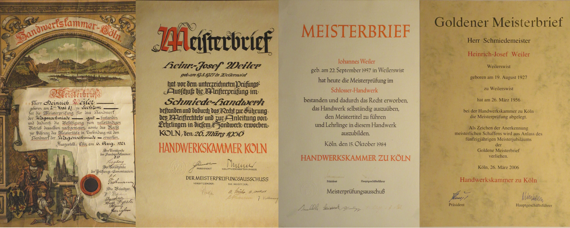 1959 übergab Heinrich Weiler die Schmiede und das Geschäft seinem Sohn Heinrich-Josef (1927-2010). Anfang der 1970er Jahre kam ein Schlüsseldienst dazu. 1984 erhielt dessen Sohn Johannes den Meisterbrief im Schlosserhandwerk. 1986 feierte die Familie das 75-jährige Betriebsjubiläum.